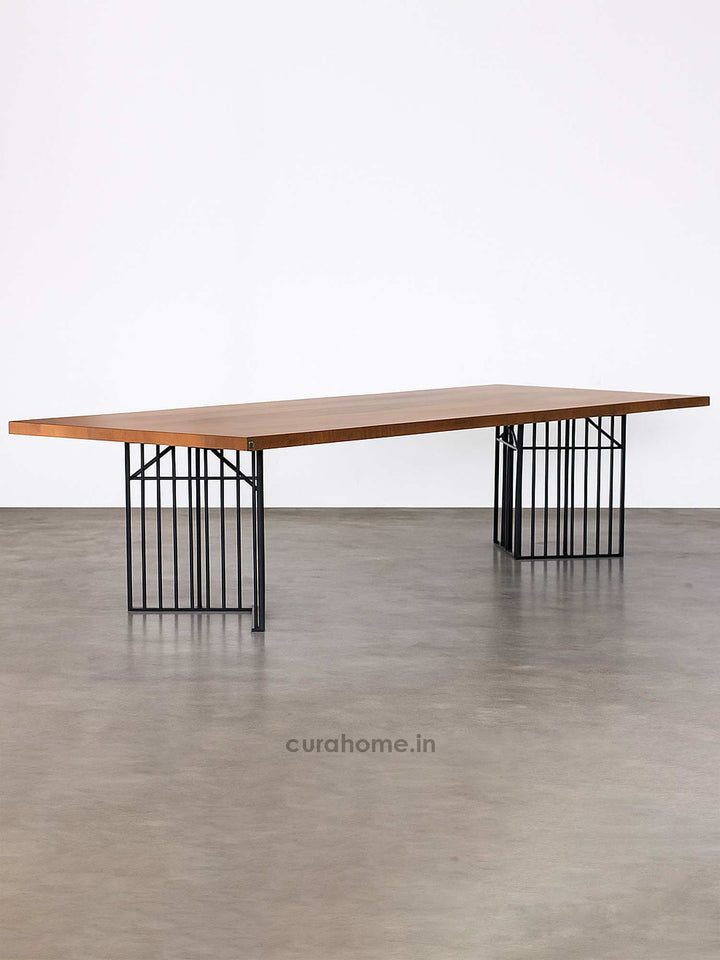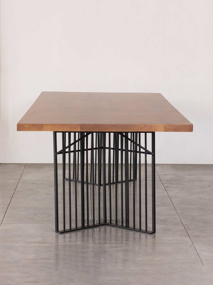 The Azhi Dining Table is a bold blend of modern form and functional design. Featuring a warm ash wood top paired with sleek, powder-coated metal legs, this table offers strength and elegance in equal measure. The graphic metal base adds a sculptural touch, making it a statement piece for contemporary homes. Whether for everyday meals or special gatherings, the Bento Dining Table delivers durability and refined style in a stunning architectural silhouette.