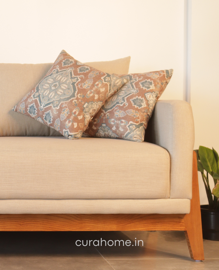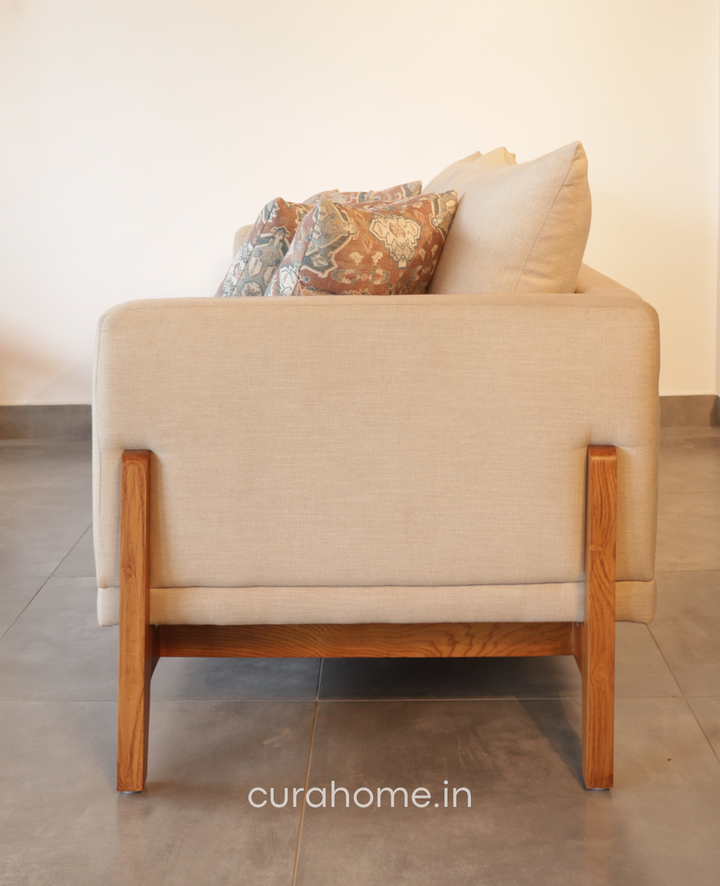 The Solera Sofa is a harmonious blend of craftsmanship and comfort. Framed in rich solid wood with a warm natural finish, its clean lines and timeless silhouette bring effortless sophistication to your home. The soft beige upholstery offers a calming neutral base, while the intricately patterned cushions add depth, texture, and character. Designed for both everyday living and elevated gatherings, the Solera Sofa is more than seating—it’s a statement of style, comfort, and refined taste.