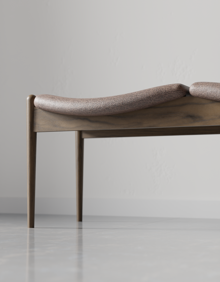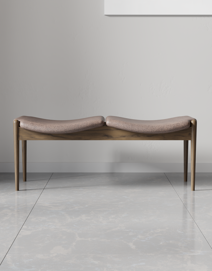 The Svelte Bench is a refined piece of furniture crafted from durable ash wood, featuring a gracefully contoured silhouette that supports comfort and elegance. Its sculpted seat is upholstered in a soft, premium fabric, offering both tactile luxury and visual appeal. With a sleek profile and finely tapered legs, this bench seamlessly blends minimalist aesthetics with ergonomic design, making it an ideal addition to modern interiors, entryways, or living spaces.