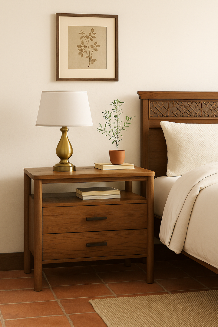 Elevate your bedroom with the Kaplan 2-Drawer Nightstand, where clean design meets everyday functionality. Crafted from premium solid Ash wood with a rich, warm finish, this nightstand features two spacious drawers for clutter-free organization and an open shelf for easy access to bedtime essentials. The minimalist black handles add a modern edge to its timeless silhouette, making it a versatile piece for both contemporary and classic interiors.