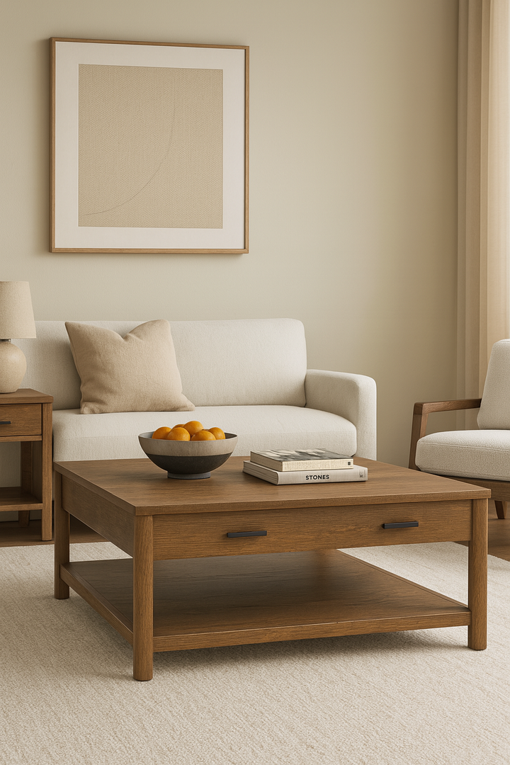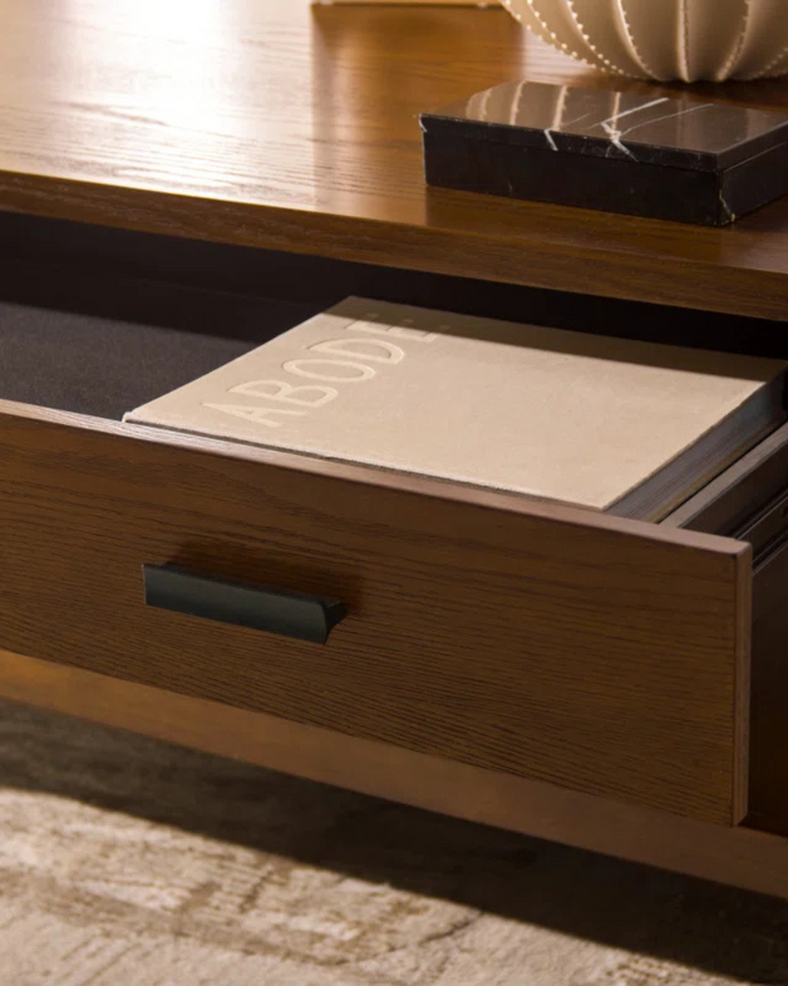 Bring harmony to your living room with the Takumi Coffee Table — where form meets function in the most stylish way. Designed with a spacious top, an open shelf, and discreet drawers, it’s perfect for everything from morning coffee to game nights and magazine stacks.